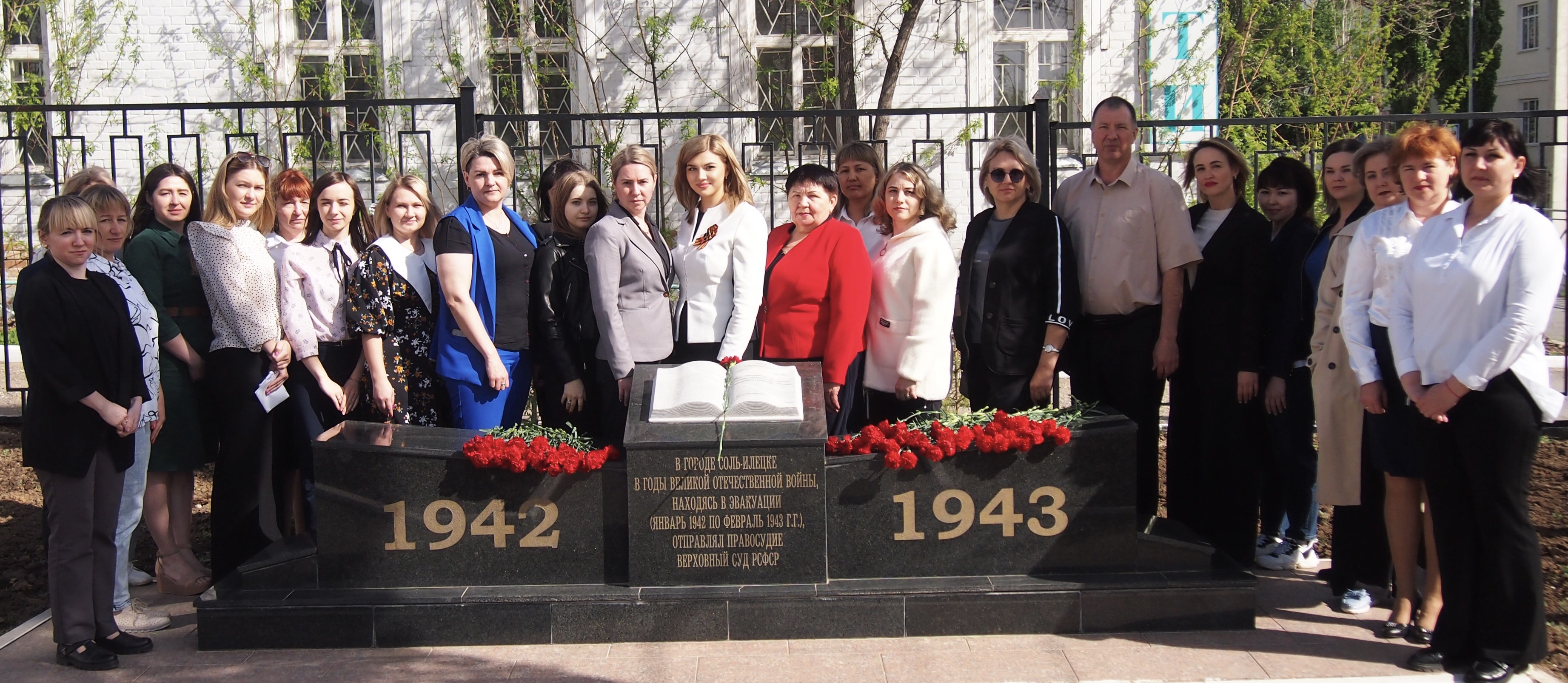 В преддверии празднования 78-ой годовщины победы в Великой Отечественной войне сотрудники Соль-Илецкого районного суда и аппаратов мировых судей Соль-Илецкого района собрались у памятного знака, чтобы почтить память коллег, отправлявших правосудие в годы войны.